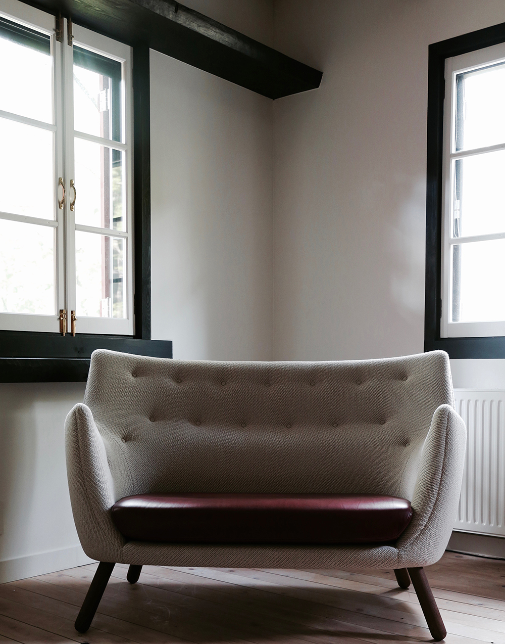 Previous Image Next Image 3-House-of-Finn-Juhl-Hotel-Hakuba-Japan-Poet-Sofa-by-Finn-Juhl-crafted-with-Sorensen-Leather-IMG_7701crop Poet Sofa with contrast leather seat